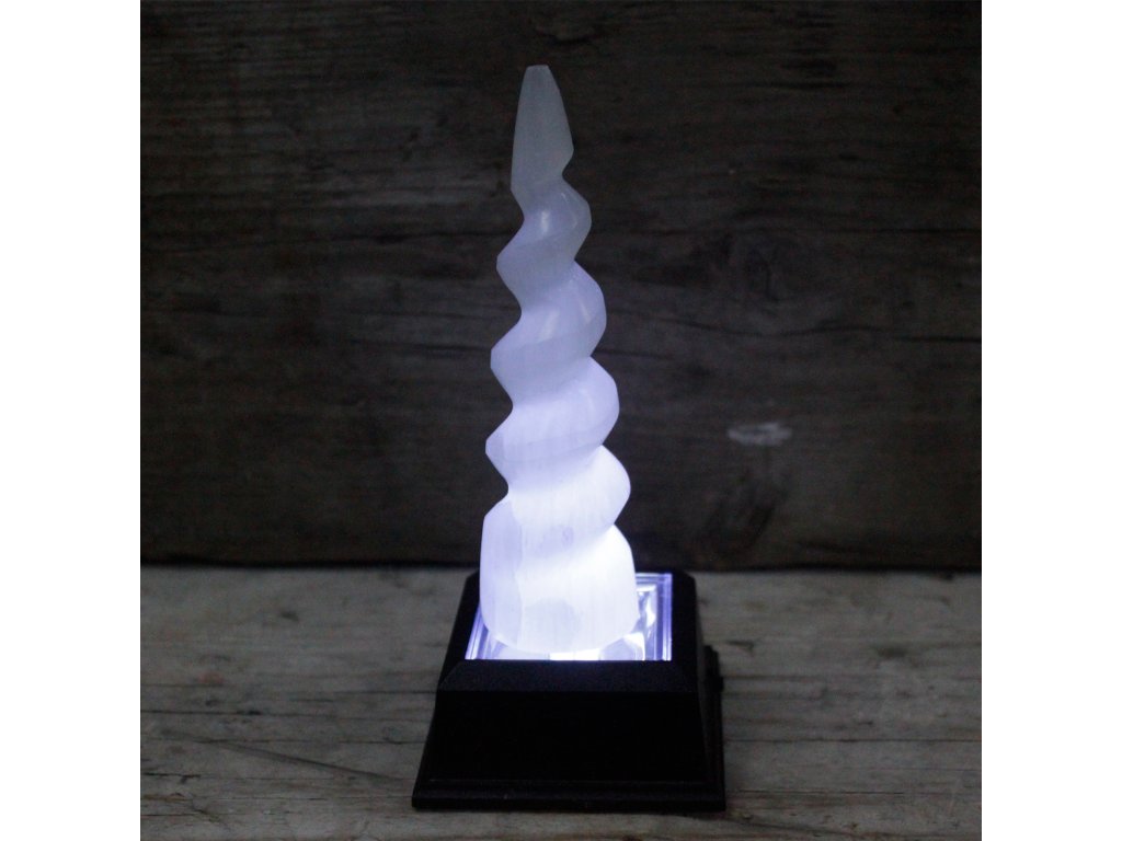 Selenitové veže – moderné spojenie minerálu a svetla - ku selenitovým vežiam sa hodia aj LED podstavce.