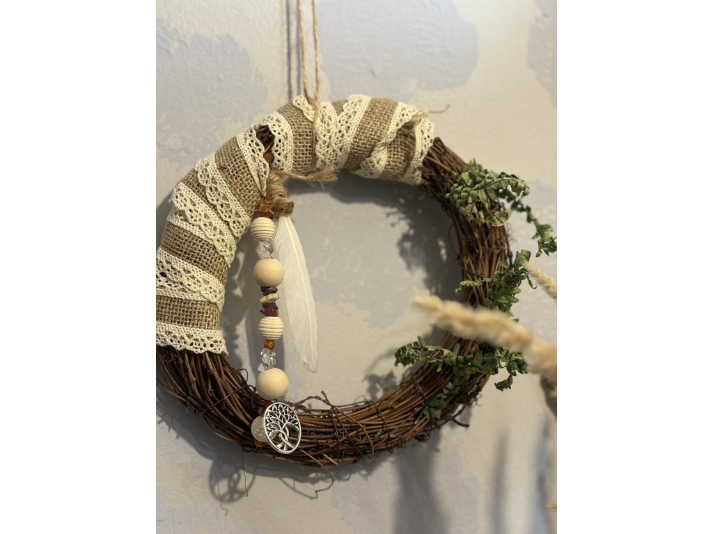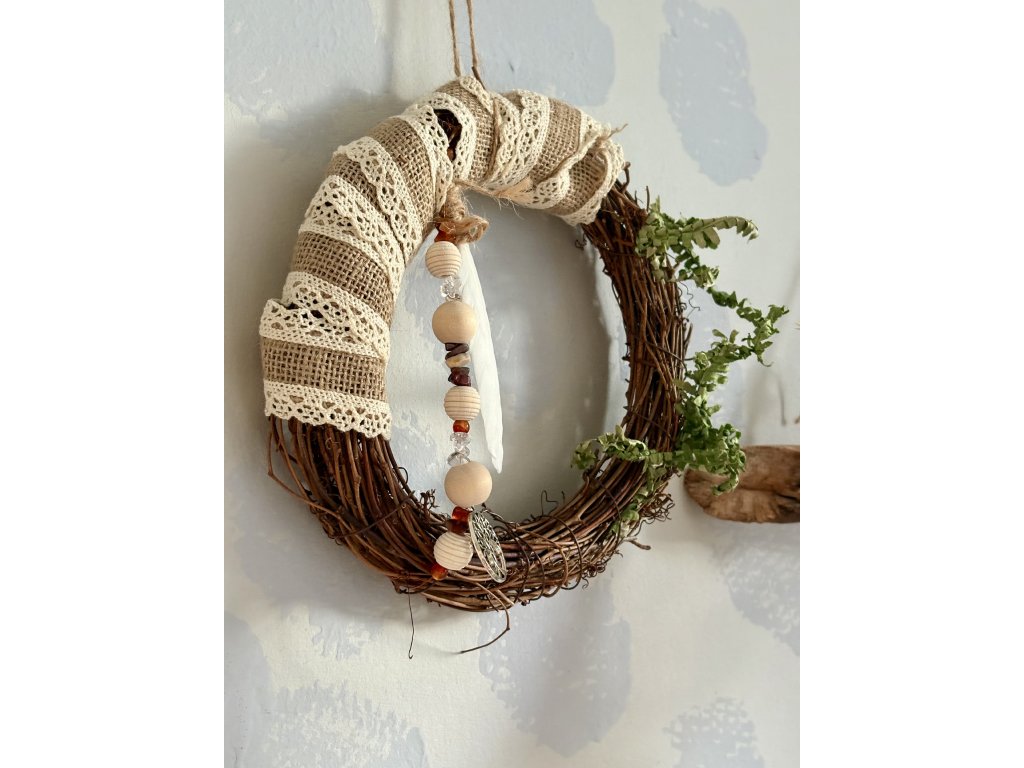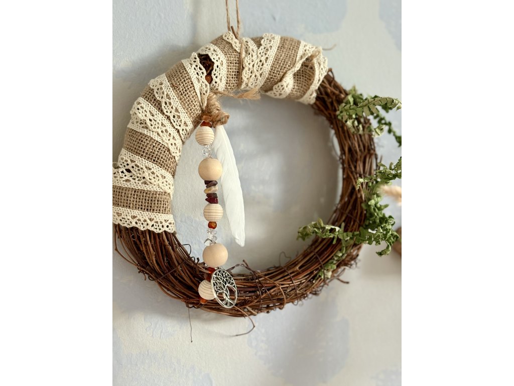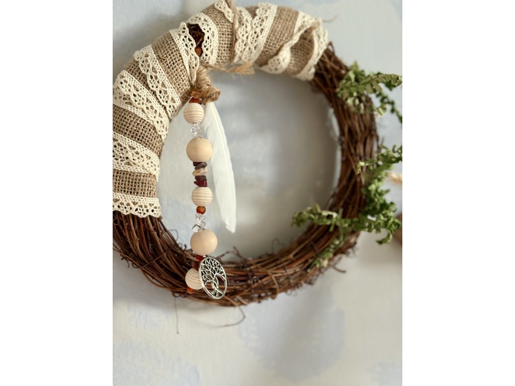 Boho venček so stromom života a minerálmi – závesná dekorácia