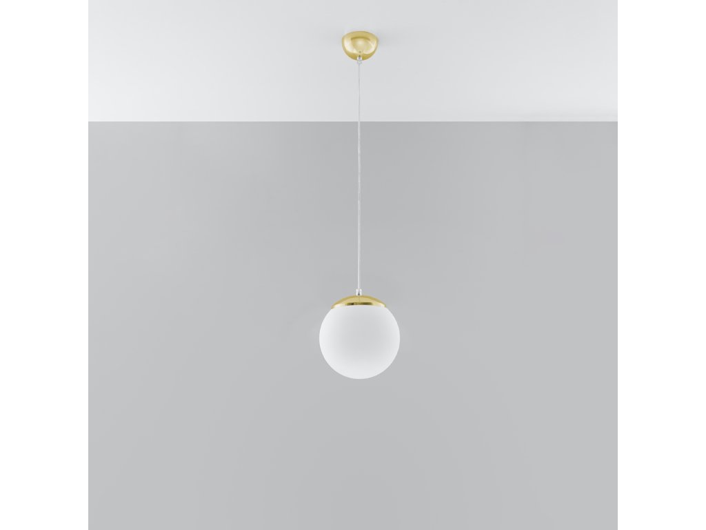 Nech sa stane svetlo! A dokonalý štýl. Pozvite do svojho interiéru zavesenú lampu UGO. Jej mliečnobiely kryt rovnomerne rozptyľuje svetlo, ktoré sa šíri do všetkých smerov. Krásna, jednoduchá forma a zlaté akcenty lampy UGO sa hodia do moderného salónu v štýle glamour alebo do minimalistického spálne, ktoré chcete trochu zohriať. Vyberte si veľkosť, ktorá najlepšie vyhovuje vášmu interiéru. V kolekcii lampy UGO nájdete kryty v troch veľkostiach. Zavesiť jednu alebo viac a vytvorte súvislú aranžáciu v celom dome.Doplňkové parametry