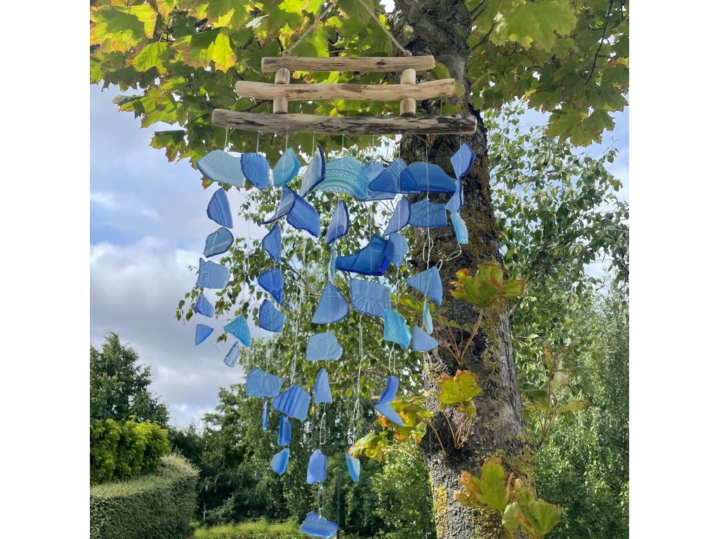 Oživte svoj domov alebo záhradu originálnou boho zvonkohrou z recyklovaného skla v nádhernom modrom odtieni. Každý kus je ručne vyrobený z recyklovaného skla, vďaka čomu je nielen vizuálne jedinečný, ale aj šetrný k prírode.