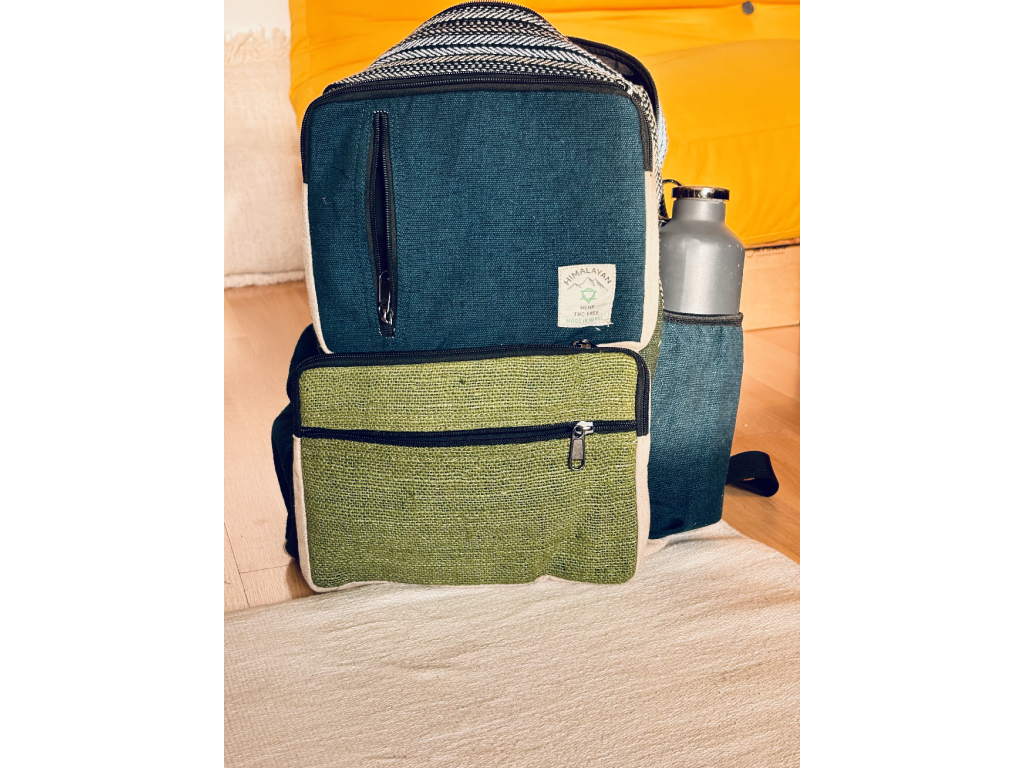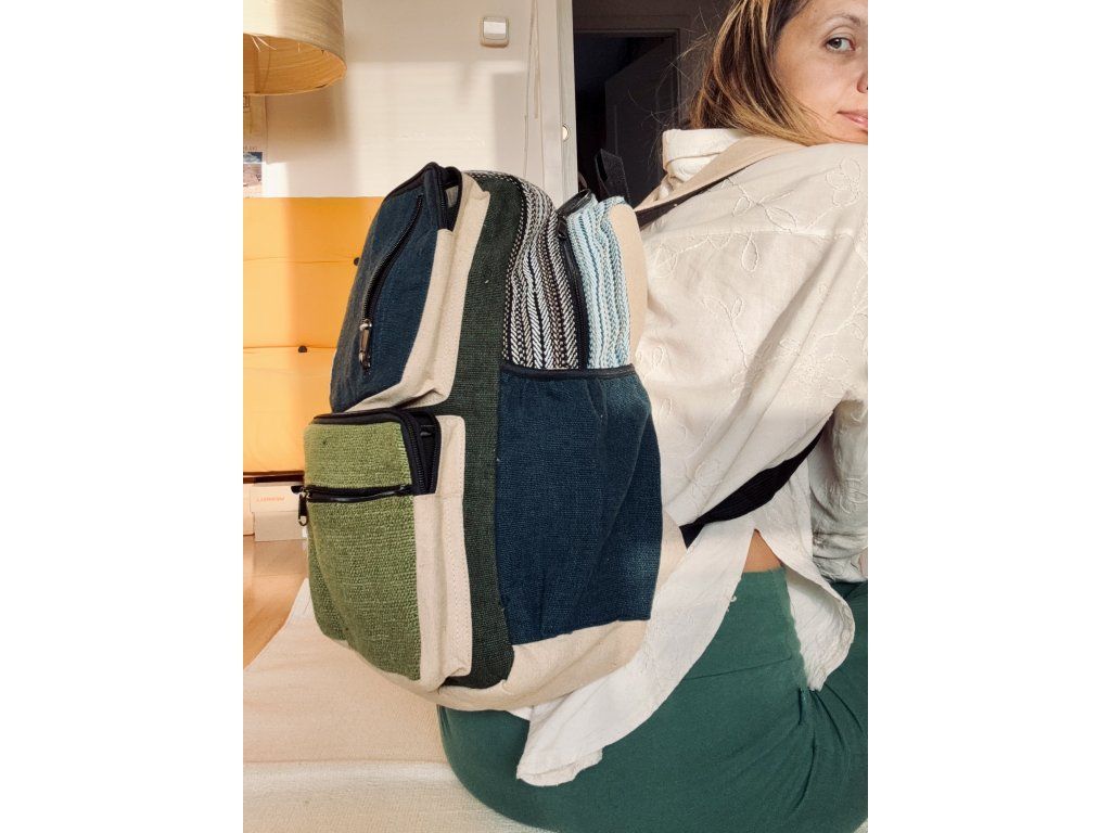 Boho konopný batoh v modrozelenom prevedení prináša harmonickú kombináciu prírodných farieb a nadčasového dizajnu. Je ručne vyrobený v Nepále z kvalitného konope a bavlny, čo zaručuje jeho pevnosť, odolnosť a zároveň ekologický charakter.