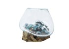 Rozmery fúkaného skla :Misa: V: 9cm, Š: 7cmDrevený Stojan: Rozmery stojanu sa môžu líšiť, keďže každý koreň je atypický