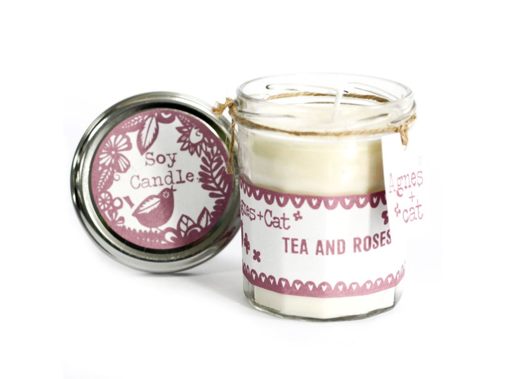 Sviečka zo sójového vosku v zaváraninovom pohári - Čaj a ruža 220ml