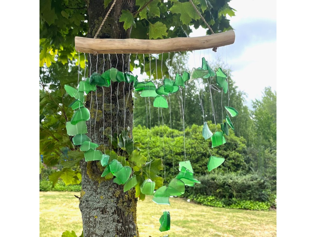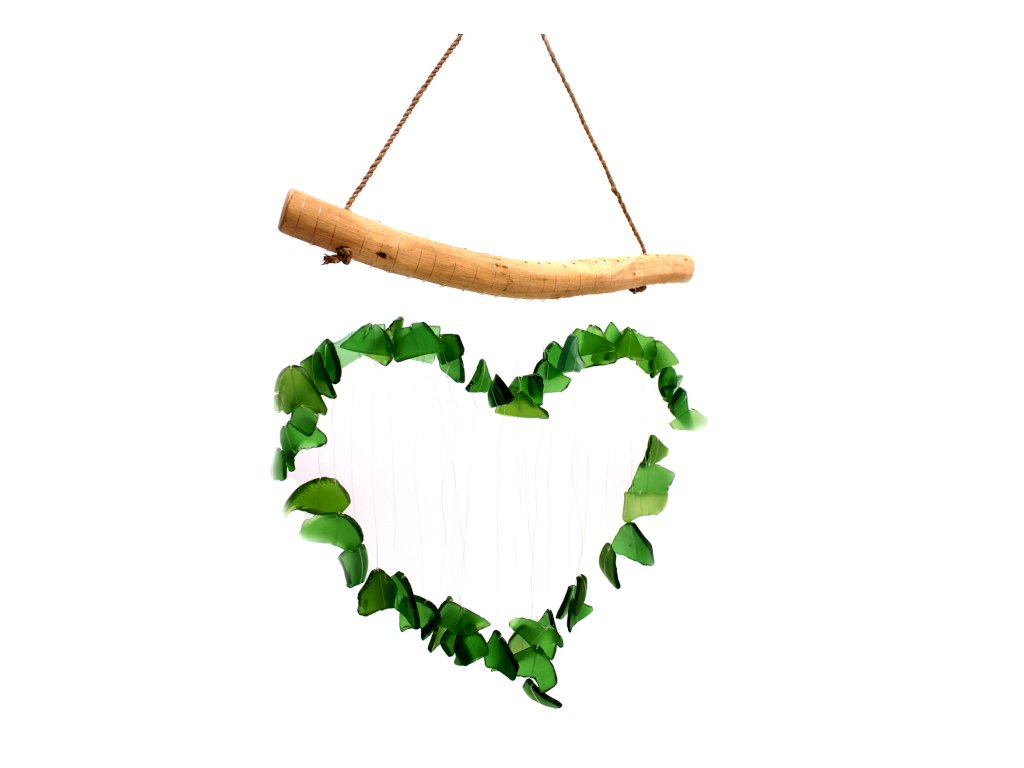 Boho sklenená zvonkohra - Zelené srdce
